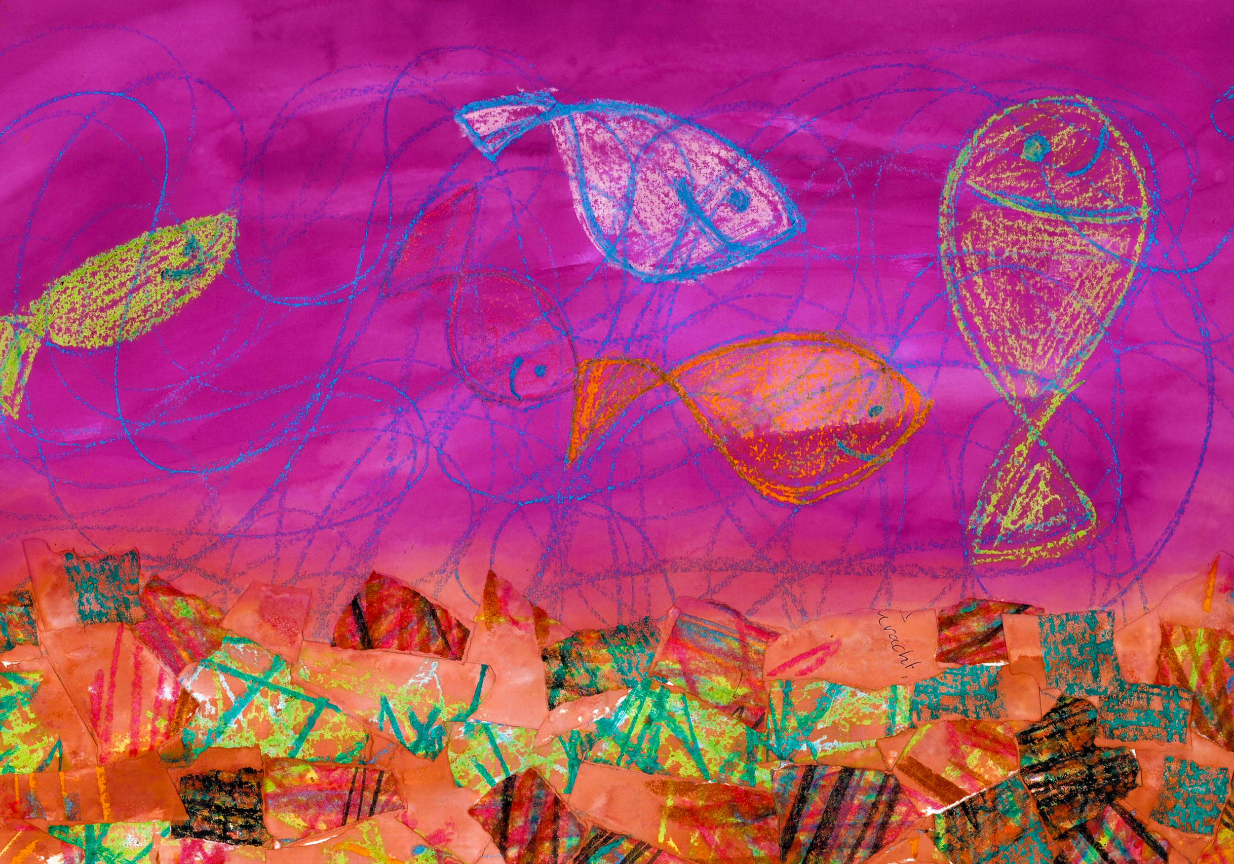 Ik werk in blokjes van 3 keer, waarin steeds een bepaalde techniek, materiaal of thema centraal staat.